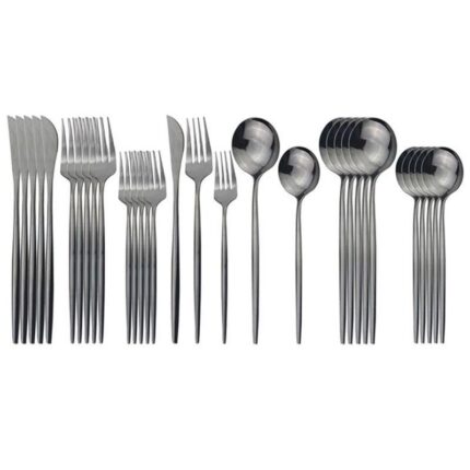 1Set = 4pcs = 1 couteau de table + 1 fourchette de table + 1 cuillère à café