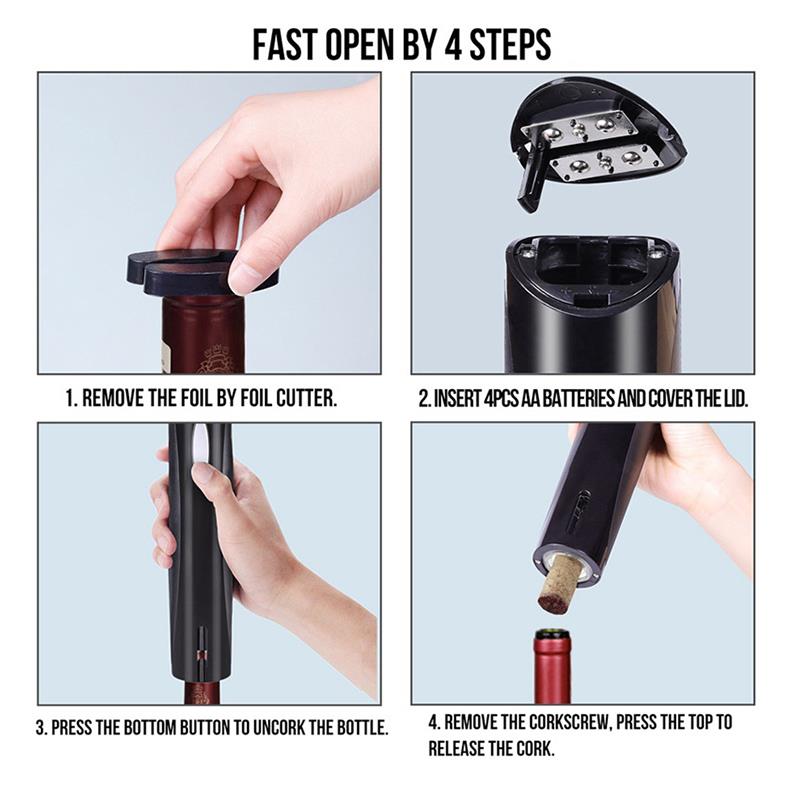 1. Facile à utiliser, le tire-bouchon électrique sans fil peut retirer et libérer le bouchon en quelques secondes sans effort supplémentaire. Bouton sensible, le bouton bas tire le bouchon hors de la bouteille, le bouton haut libère le bouchon