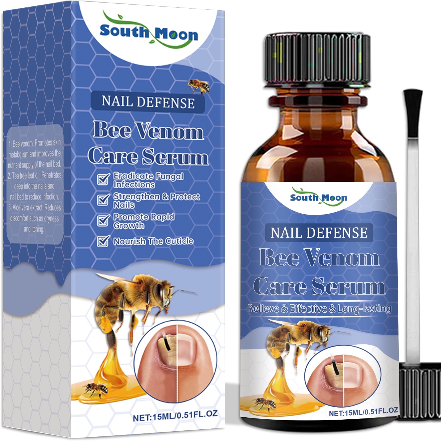 Ingrédients : eau, venin d’abeille, huile de feuille de thé, extrait de phellodendron, extrait de feuille d’aloès.